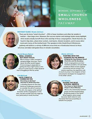On Monday, September 17, 2018, there will be a Small Church Wholeness Pathway at ACU Summit. Each of the speakers will have something unique to say, but all related to efforts within small churches. The speakers this year will be David Nelson (a missionary in New Zealand), Colt McCook (transitioning from ministry in Winters, Texas, to the Searcy, Arkansas area), Alyssa Johnson (working on her Ph.D. in English at Texas Christian University), and Jim Weaver (director of Rural America Ministries).